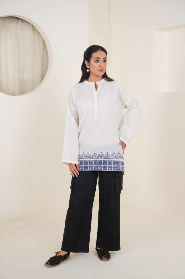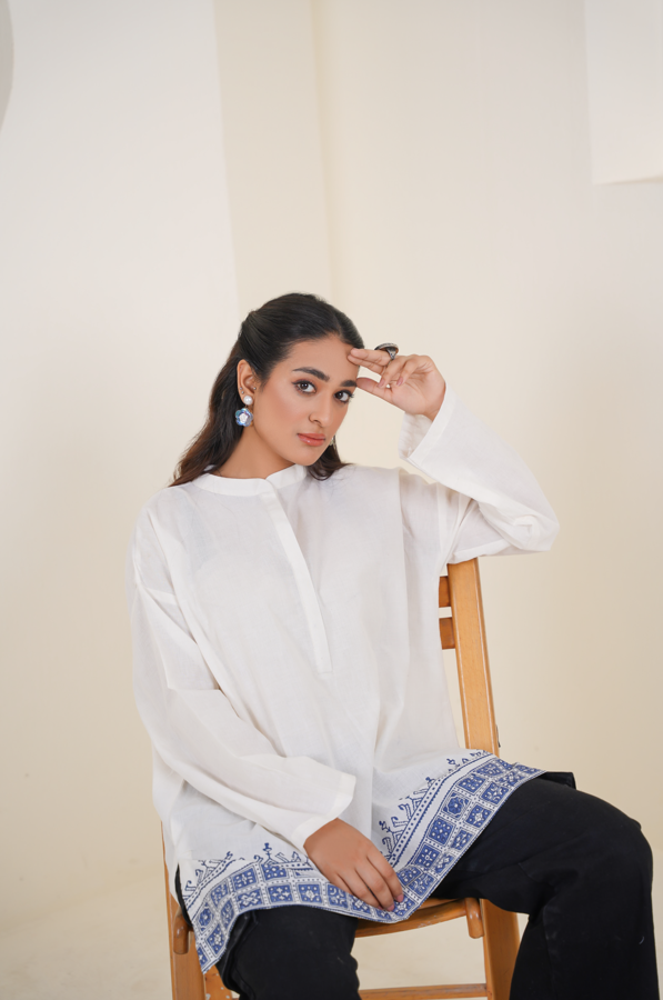 contrast of crisp white with soothing blue creates a look that’s effortlessly graceful and deeply rooted in craft.