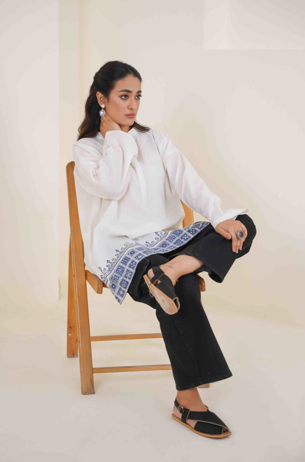 Let your wardrobe whisper stories of timeless craft with Tabeer, a kurta designed for the dreamer in you. Set on a pure white base, it features delicate